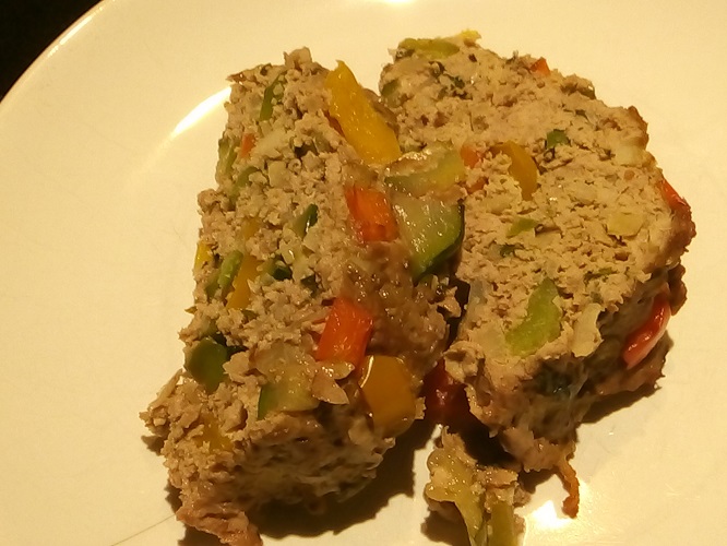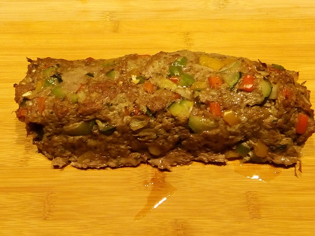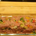 Meng het gehakt met de kruiden en de groenten voorzichtig zodat je de groenten niet stuk knijpt.