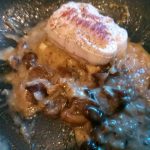 4. Voeg de witte wijn toe en laat dit een beetje inkoken. Voeg het zakje champignonsaus toe met de bospaddestoelenmix.