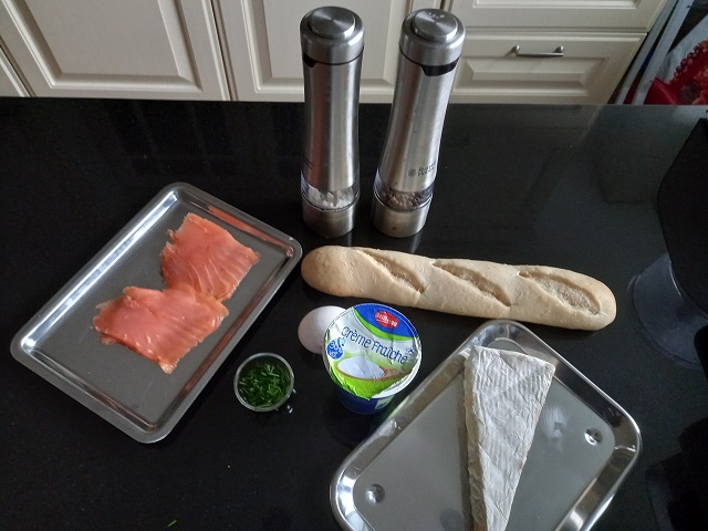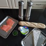 Zet alle ingrediënten klaar. Snijd de zalm in stukjes. Verwarm de oven voor op 180° boven en onder warmte.