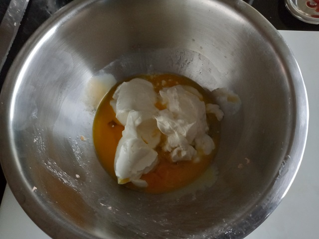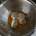 Meng in een kom het ei met de crème fraîche. Klop dit met een garde tot een glad mengsel.