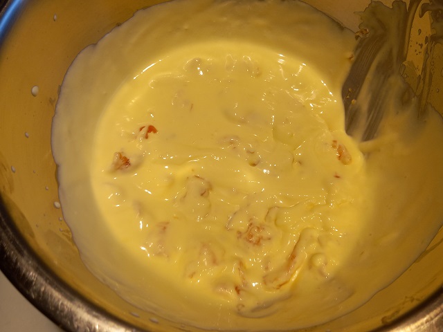 Meng de zalm door het ei mengsel. Voeg wat zout en peper toe. Meng door elkaar.