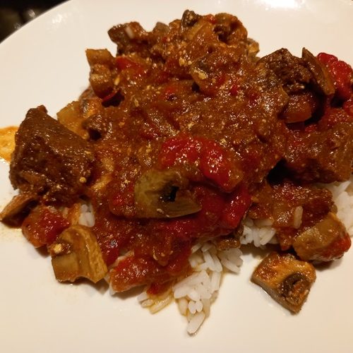 Goulash. Van oorsprong een gerecht uit Hongarije. Inmiddels zijn er heel veel versies van dit gerecht ontwikkeld. Dit is die van mij.