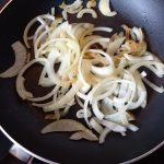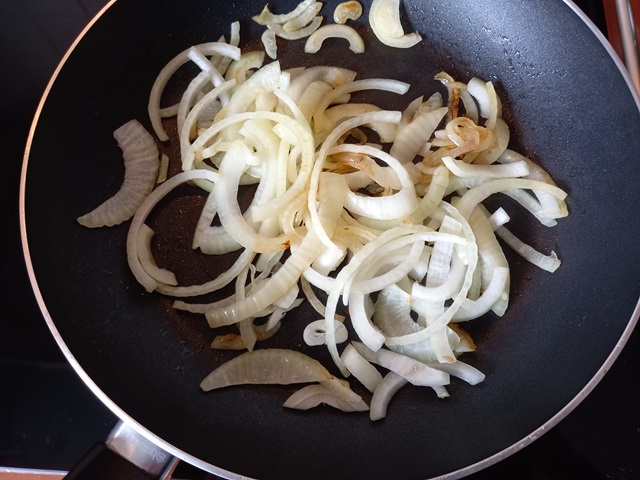Verhit 1 el. olijfolie in een koekenpan en bak de uienringen ongeveer 5 minuten tot ze zacht worden. Ze mogen niet bruin bakken. Doe ze over in de slowcooker.