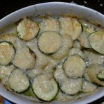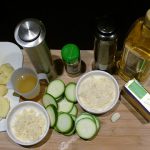 Zet alle ingrediënten klaar. Schil de aardappelen en snijd deze in plakjes. Was de courgette en snijd deze ook in plakjes. Pel de teen knoflook.