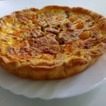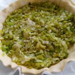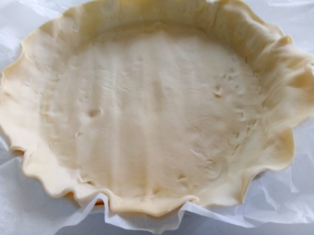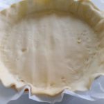 Rol het deeg uit over een quichevorm. Laat het bakpapier zitten. Je haalt hem zo eenvoudiger uit de vorm en je hoeft de vorm niet in te smeren met boter.
