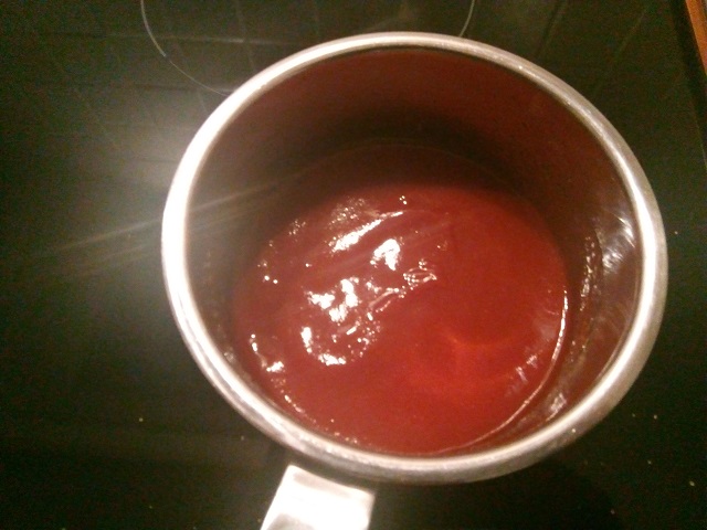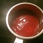 Meng alle ingrediënten voor de saus en verwarm deze en roer regelmatig.