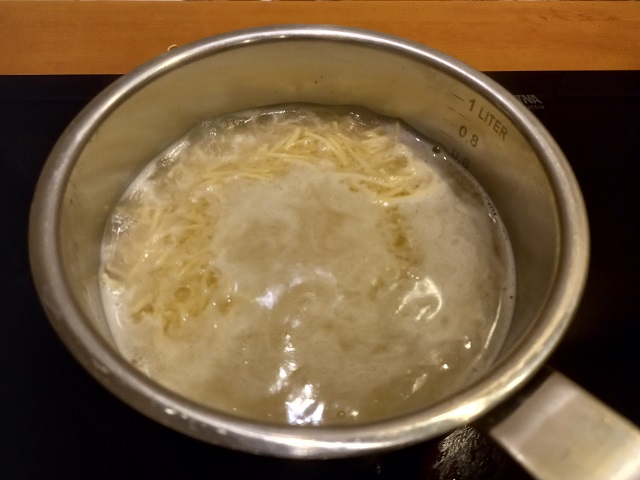 Kook de eiermie zoals aangegeven op de verpakking in gezouten water.