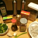 1. Zet alle ingrediënten klaar. Pel en snipper de knoflook.