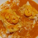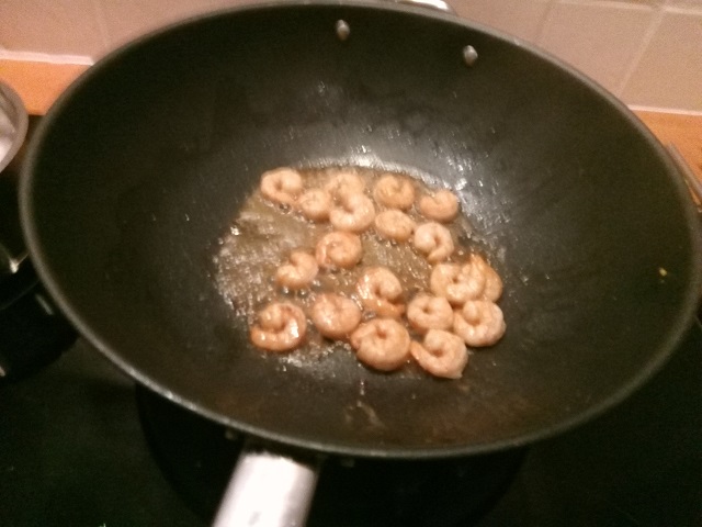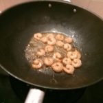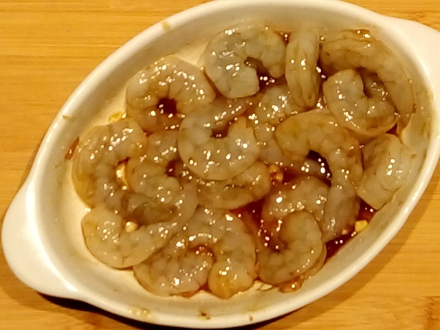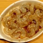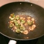 7. Haal de garnalen uit de marinade. Gooi deze niet weg. Verhit de boter in de pan en bak de garnalen. Iedere zijde ongeveer 2 minuten. Voeg de saus en de marinade toe. Breng zachtjes aan de kook.