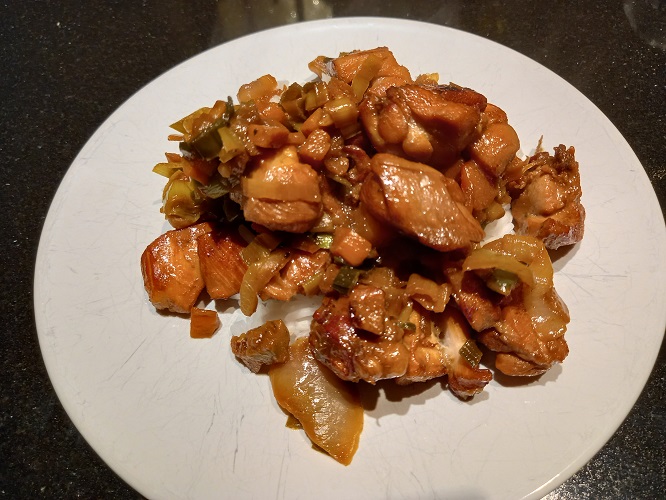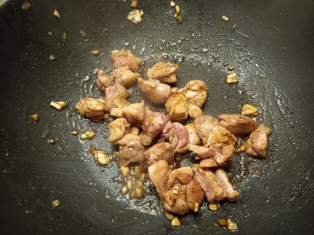 3. Verhit een wok op middelhoog vuur. Bak de kip met de marinade tot de kip gaar is. Keer regelmatig om.