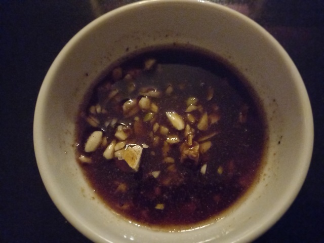 1. Meng in een kom de arachideolie, sojasaus, sesamolie, honing, knoflook, gember en peper.