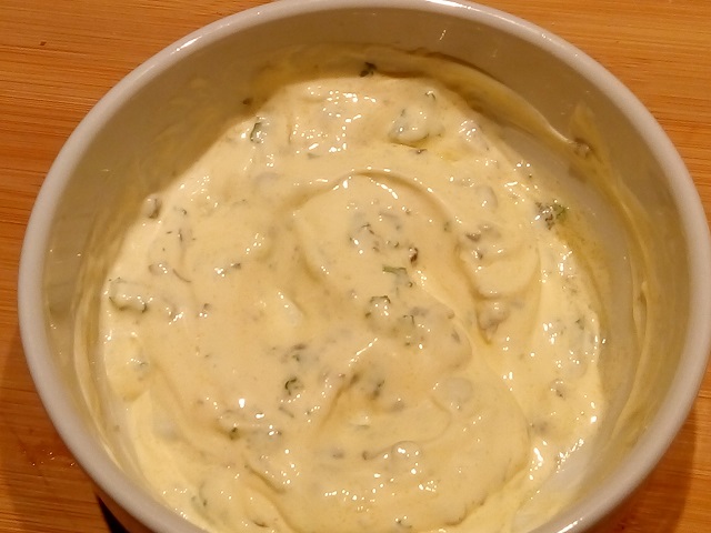 Snijd de augurk en de kappertjes heel fijn. Meng alle ingrediënten voor de tartaarsaus in een kom. Breng op smaak met een beetje zout.
