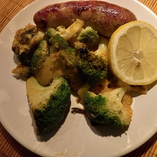 9. Voeg de worstjes nog even toe om goed door te warmen. Verdeel de worstjes, broccoli met de saus over de borden. Garneer met een schijfje citroen.
