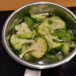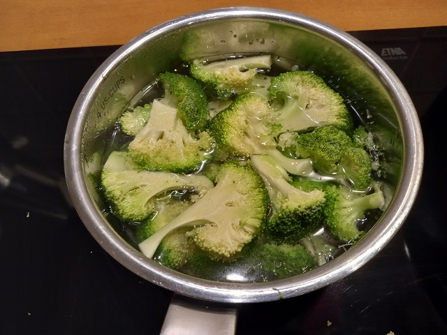 3. Blancheer ondertussen de broccoliroosjes een minuut of 5 in kokend water.