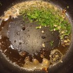 8. Deglaceer de pan met citroensap van de halve citroen, de bouillon, srirsacha saus en kook iets in.