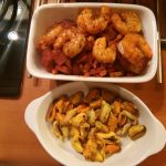 Jambalaya met kalkoen en zeevruchten. Pel en snipper de uien en de knoflook. Pel de scampi’s en verwijder het darmkanaaltje. Snijd de chorizo over de lengte in 4en en snijdan in blokjes. Snijd de paprika in blokjes.
