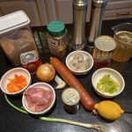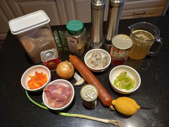 Zet alle ingrediënten klaar. Pel en snipper de ui en knoflook. Snijd de bleekselderij in halve maantjes. Snijd de paprika in blokjes. Snijd de kippendijfilet in blokjes. Snijd chorizo in blokjes.