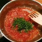 2. Verwarm een ruime steelpan met de boter. Fruit de sjalotten. Voeg de tomatenblokjes, peterselie, zout en peper toe. Giet de wijn erbij en breng aan de kook.