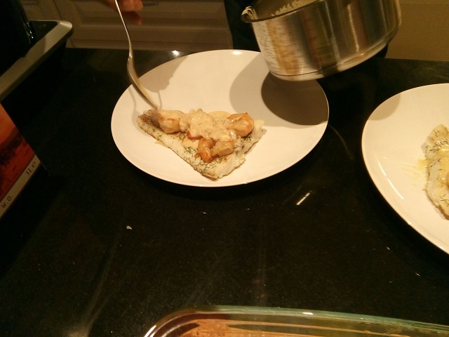 Kabeljauw, gamba’s met mosterdsaus