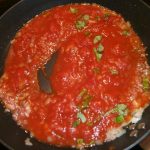 Verhit een scheutje olie in een koekenpan en fruit de ui. Zodra de ui glazig is voeg dan de tomaten, de suiker en de in stukjes gescheurde basilicum toe. Voeg wat zout en peper toe. Zet het vuur wat lager en laat even een minuut of 10 lekker stoven.
