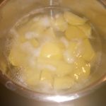 Zet de aardappelen op in water met wat zout. Zodra de aardappelen gaar zijn, giet deze dan af.