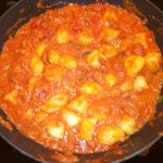 Voeg het chorizo mengsel en de gekookte aardappelen bij het tomatenmengsel.