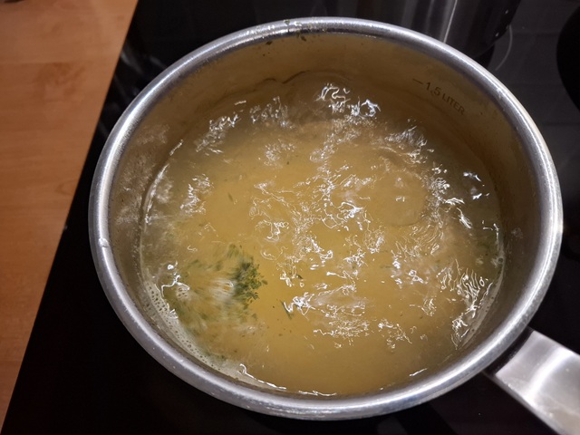 Breng 50 cl water aan de kook met het bouillonblokje.