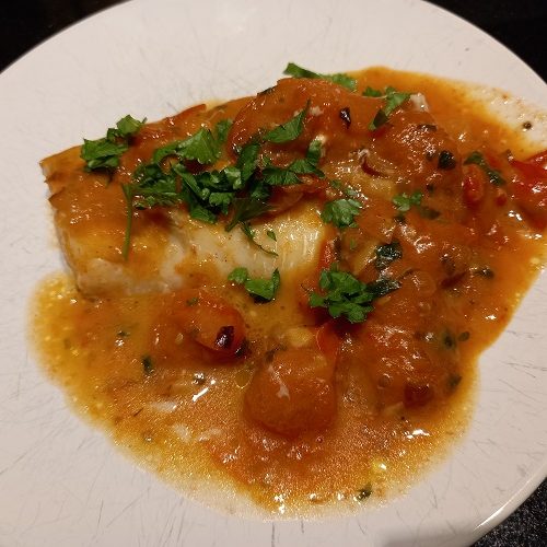 Haal de kabeljauw uit de oven en haal het aluminiumfolie eraf.