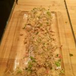 Verdeel het paneermeelmengsel over de vis en druk lichtjes aan. -