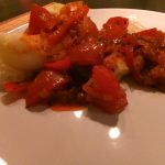 5. Verdeel over de borden. Ik gaf er aardappelpuree bij, maar een pilavrijst smaakt er ook prima bij.