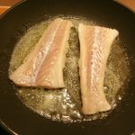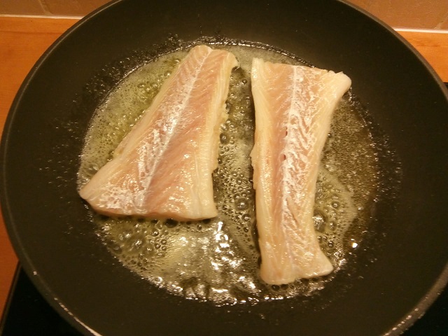 4. Bak ondertussen in een koekenpan de kabeljauwfilets in de rest van de olie.