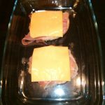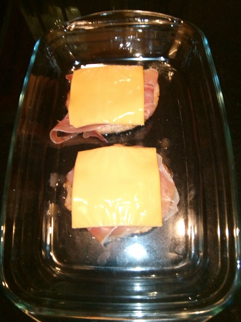 Haal uit de pan en leg ze in een ovenschaal. Bedek elke schnitzel met een plak ham en kaas.