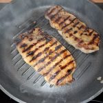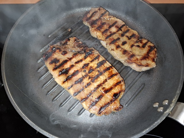 Verhit een grillpan of de bbq en bak de karbonades aan beide zijden. Mijn karbonades waren niet heel erg dik. Ik bakte ze 4 minuten per kant.
