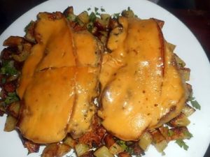 Karbonade met katenspek en Cheddar