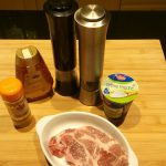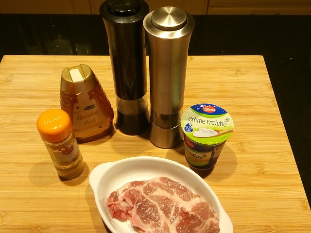 Zet alle ingrediënten klaar. Bestrooi de karbonade met zout en peper.