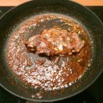 Verdeel over de borden en geef er groenten/aardappelen naar keuze bij. Wij aten het met broccoli en aardappelgratin, maar kan ook heel goed met frites of aardappelpuree.