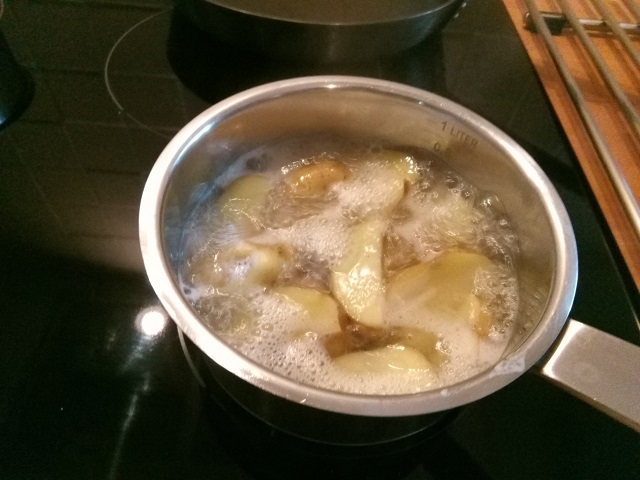 Kook de aardappelen 10 minuten voor in licht gezouten water.