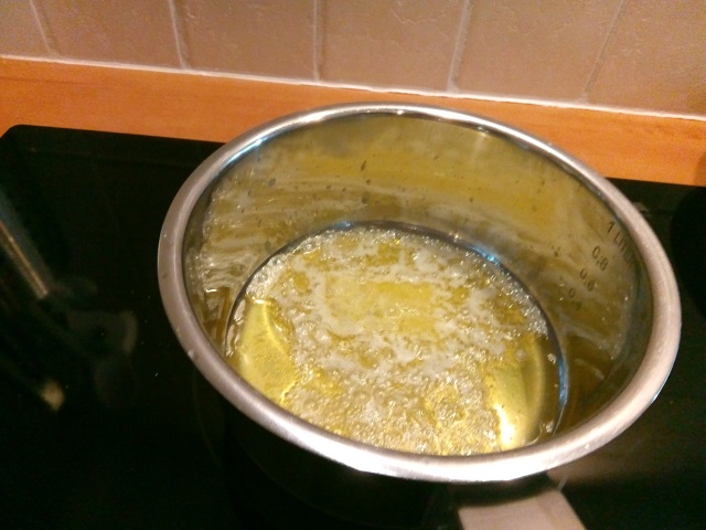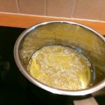 Roer het geheel goed door elkaar en laat op heel laag vuur warm worden.