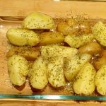 Zet alle ingrediënten klaar. Boen de aardappelen schoon. Snijd de aardappelen in vieren. Verwarm de oven voor op 200 gr.