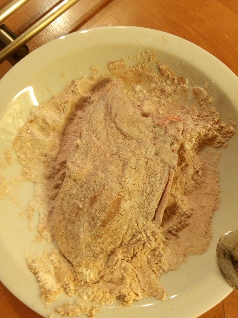 Wentel de karbonades door het bloemmengsel en schud het overtollige er af.