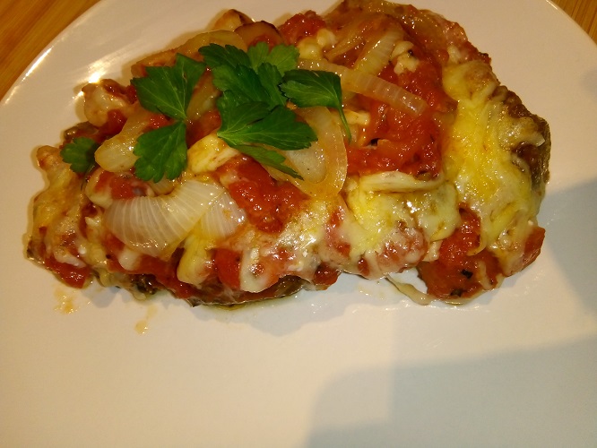 Leg de uienring op een ovenvast plaatje of in een ovenschaal. Leg hierop de karbonade em bestrooi met de twee soorten kaas. Zet in de oven laat de kaas mooi smelten