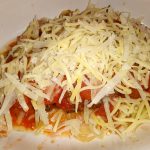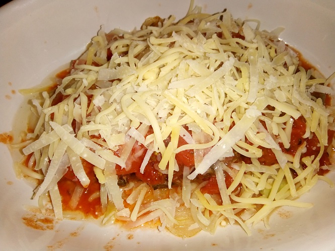 Haal de schaal uit oven, strooi er wat blaadjes basilicum over en serveer met bv. tagliatelle.