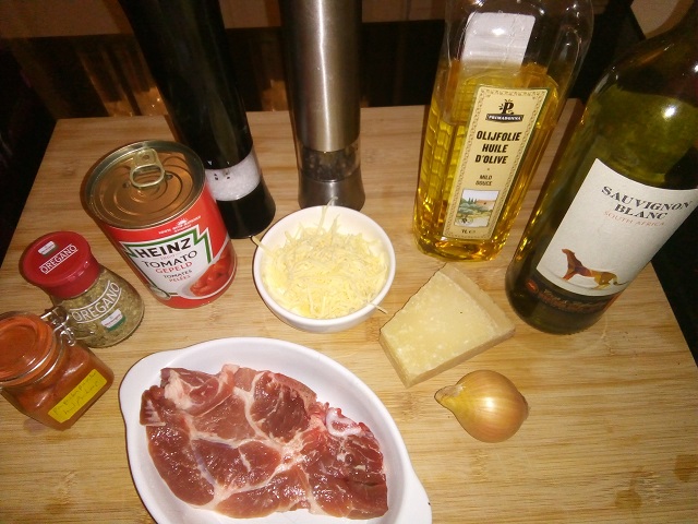 Haal de karbonade uit de pan deglasser met de witte wijn. Schraap eventuele aanbaksel met een houten lepel los. Doe dit bij het tomatenmengsel.