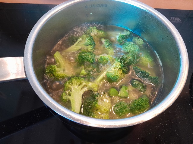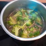 Kook de broccoli ondertussen beetgaar. Doe hetzelfde pet de tagliatelle volgens aanwijzingen op de verpakking.