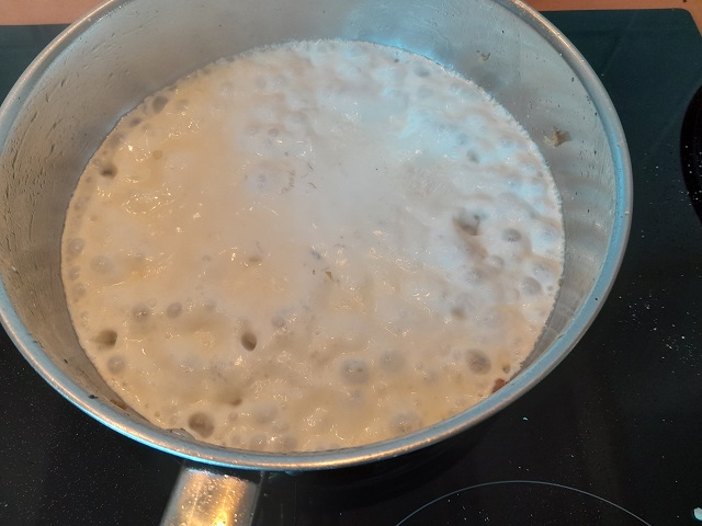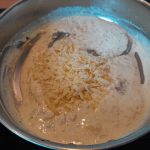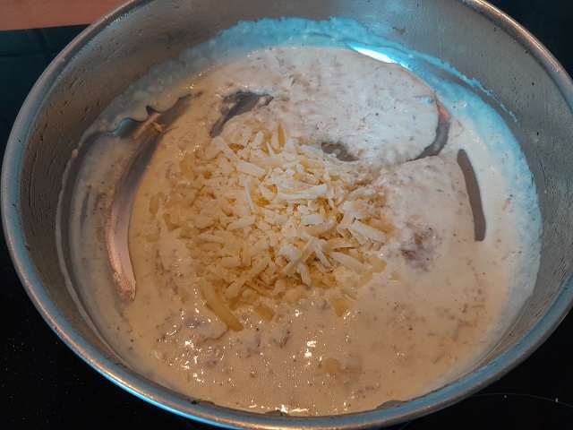 Voeg de geraspte Parmezaanse kaas toe. Roer dit door de kookroom tot de kaas is gesmolten. Proef de saus en breng eventueel verder op smaak met wat zout en/of peper.