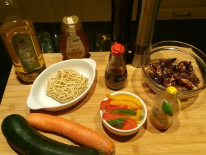 Kip gewokt met groenten en noedels