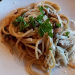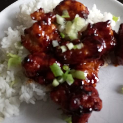 Verdeel over de borden samen met de rijst en garneer met de lente ui.