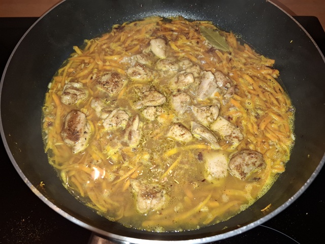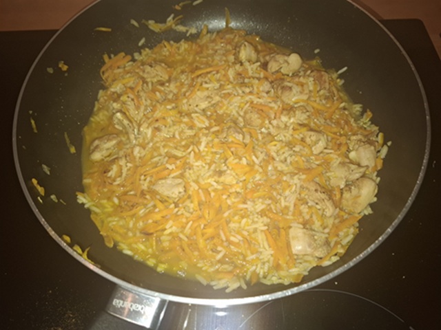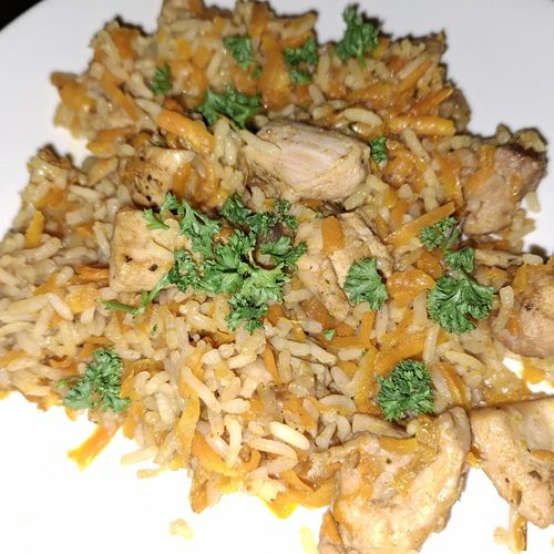 Kip met rijstpilav is een gerecht uit oost europa met kip, wortel, ui en knoflook om de rijst op smaak te brengen.