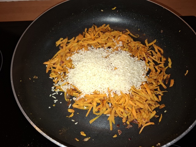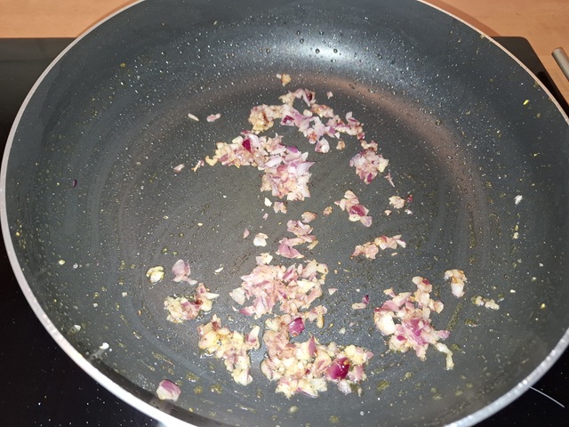 Fruit de ui in dezelfde pan. Voeg eventueel wat olie toe. Fruit ongeveer 3 minuten.