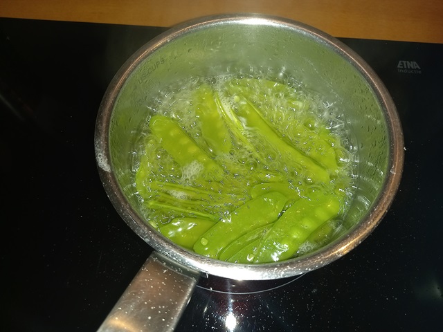 Kook de peultjes beetgaar in water met wat zout. Spoel ze af met koud water. Laat uitlekken in een vergiet.
